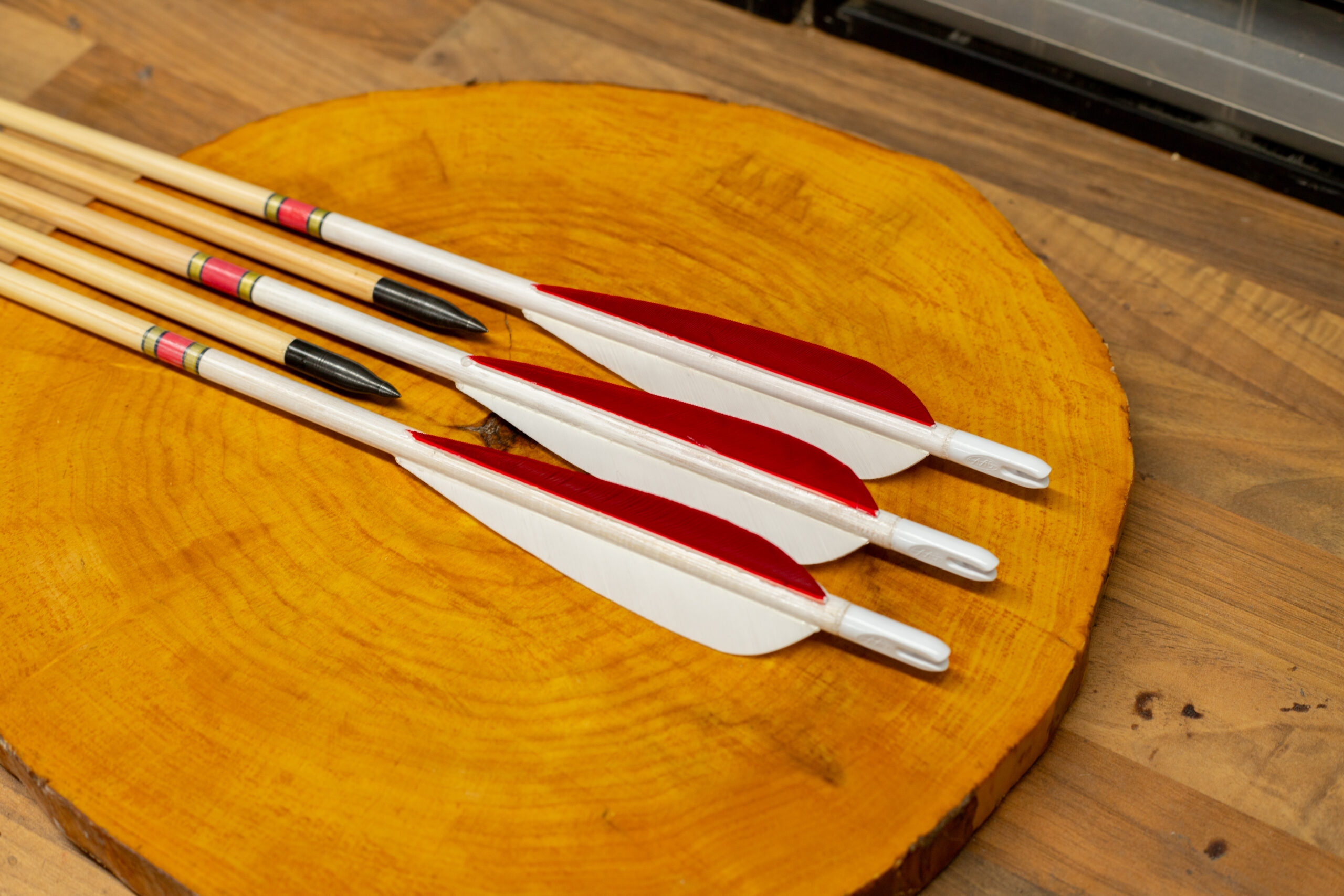 - Red and white fletchings
