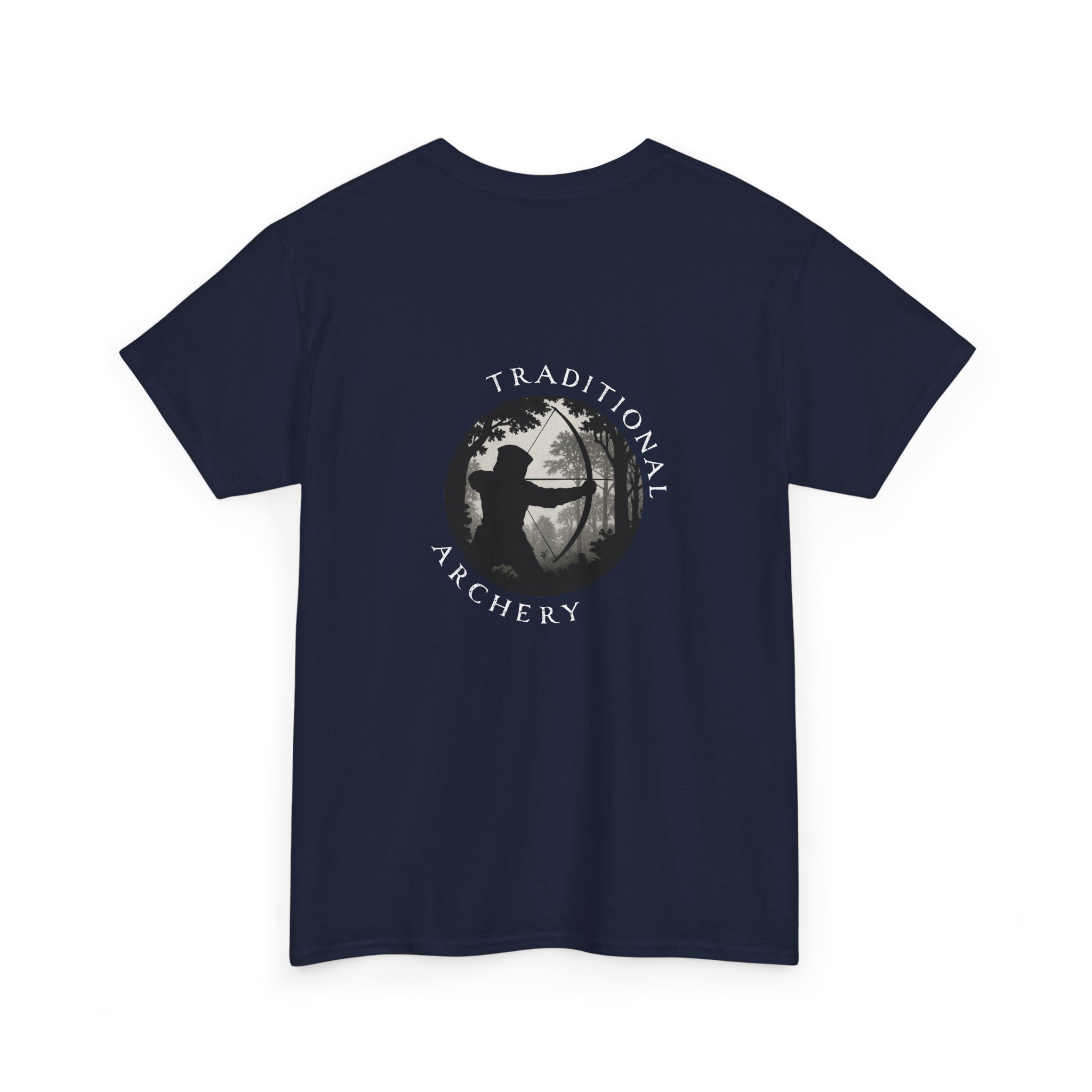 This comfortable classic-fit tee carries a quiet, focused energy — the silhouette of an archer drawn against a misty woodland, with “Traditional Archery” arcing above. It feels like the cool stillness before an arrow releases: simple, grounded, and made for people who appreciate craft and quiet practice. Wear it on range days, early-morning field sessions, or when you want to show subtle pride in traditional bow skills. The soft, sturdy cotton holds print detail crisply while the crew neckline and relaxed cut keep the shirt easy to move in. Small emblem at the chest keeps the look low-key and authentic.